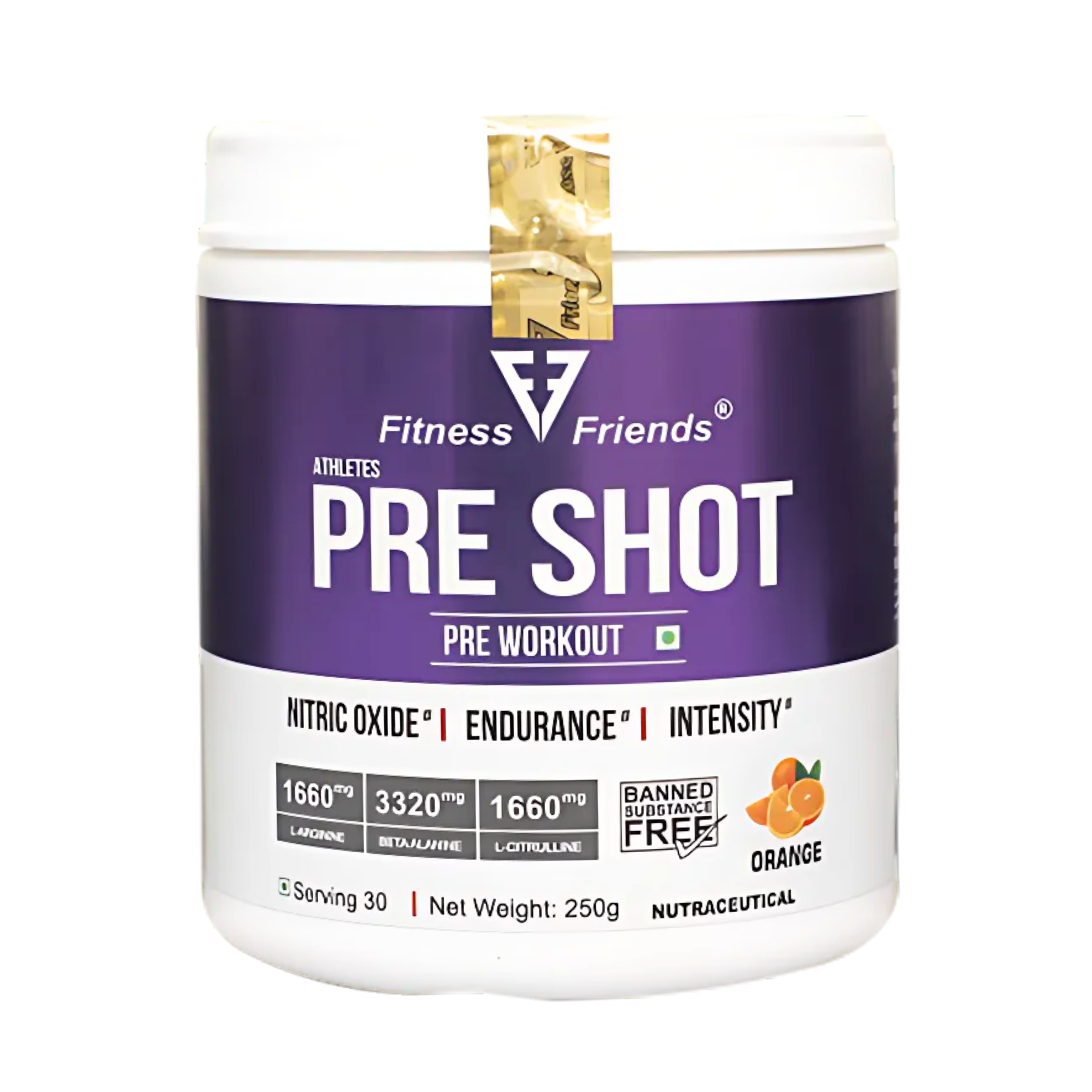 Fitness Friends Preshot Pre-Workout is a high-performance formula crafted to help you train harder, lift heavier, and recover faster. Specially designed with a potent blend of scientifically researched ingredients, this pre-workout supplement delivers explosive energy, razor-sharp focus, and long-lasting endurance to take your training intensity to the next level.
