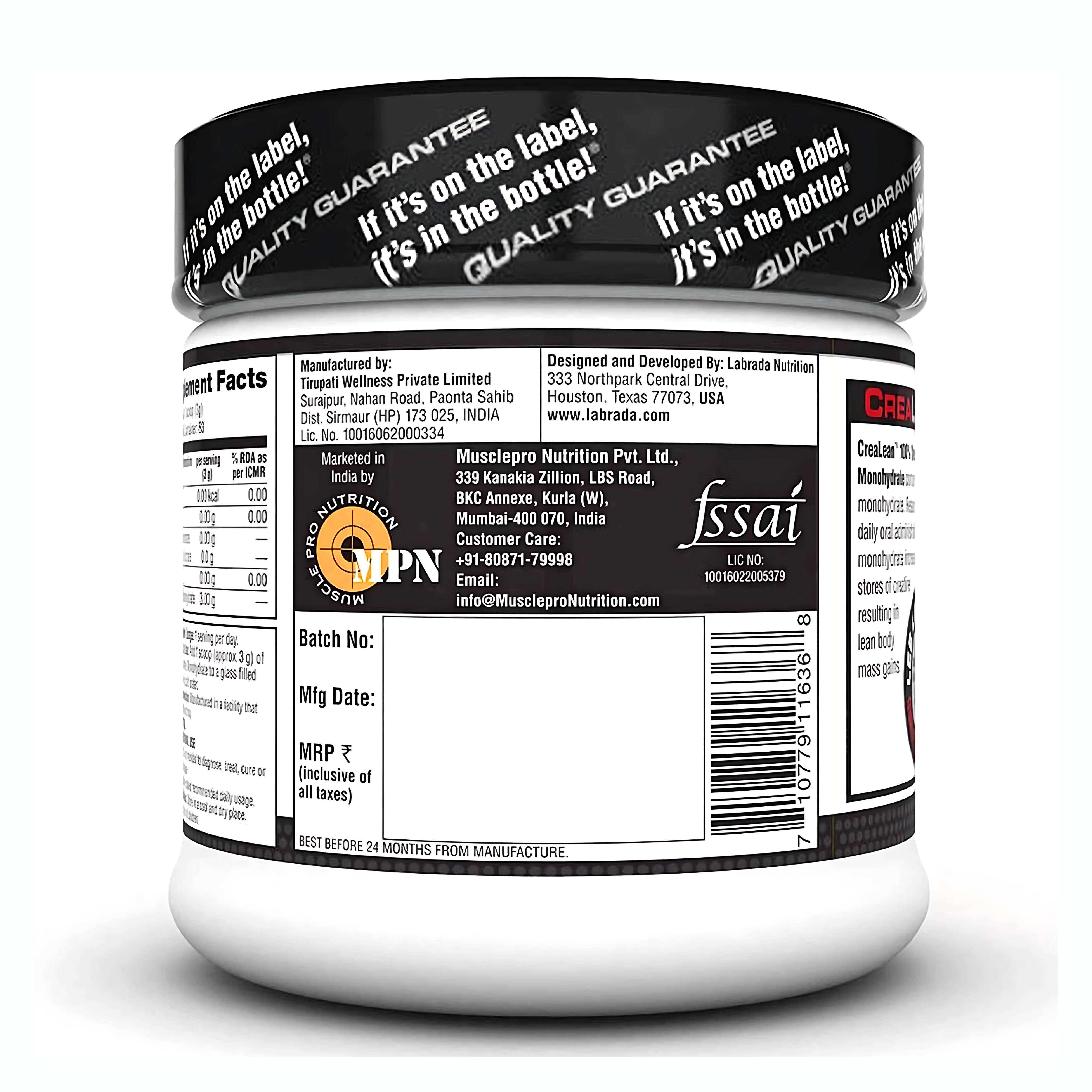 CreaLean 100% Creatine Monohydrate is a high-quality, lab-tested creatine supplement designed to help you gain lean muscle mass, boost strength, and enhance workout performance. Made from 100% pure creatine monohydrate, it delivers scientifically proven benefits to help athletes and fitness enthusiasts train harder, recover faster, and perform at their peak.